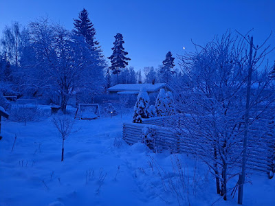 Kyllä talossamme lämmitys on. Vesikiertoiset patterit lämpiävät (vieläkin) öljyllä - asia, johon on kai pakko tarttua jollakin aikavälillä. Seinällä puhkuu yksi ilmalämpöpumppu, jota voisin melkein silitellä myötätunnosta, niin hyvin se jaksaa lämmittää. Pitkälle syksyyn se toimii ainoana sisäilman lämmönlähteenä ja tällä viikolla se jaksoi puhaltaa urheasti, kunnes alkoi hyytyä viidentenä kovana pakkaspäivänä.